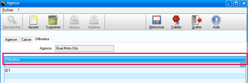 - Onglet Agence et sélectionner l'agence en question