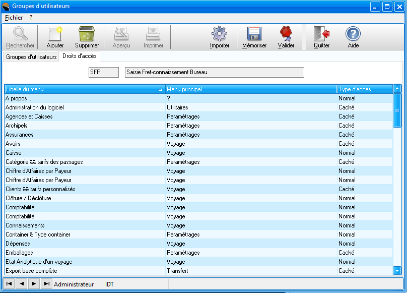 Pour pouvoir attribuer un rôle à un compte, cliquer sur Utilitaires puis Groupes utilisateurs.